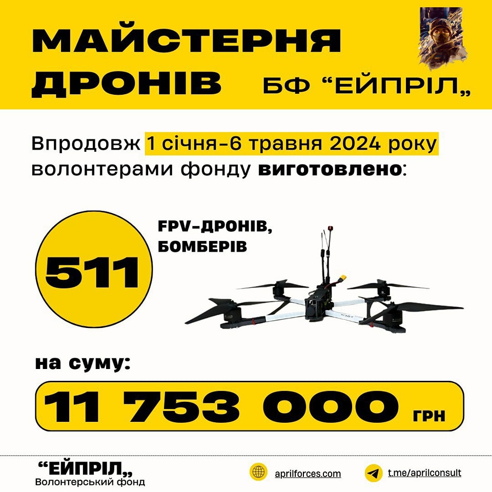 Понад пів тисячі “пташок” (fpv, бомбери) – такий підсумок роботи нашої команди за 4 місяці роботи поточного року.